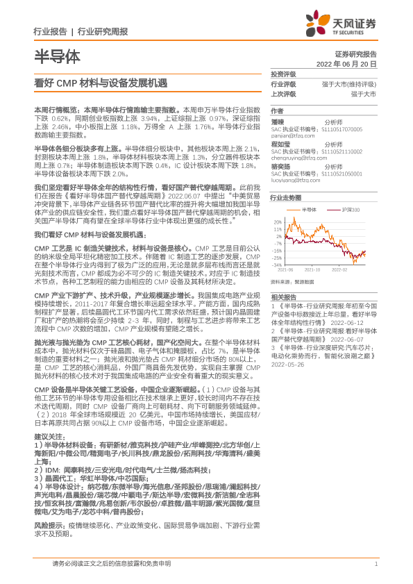【天风证券】【20220620】20220620-天风证券-半导体行业研究周报:看好CMP材料与设备发展机遇-20页
