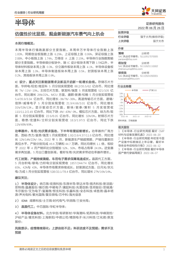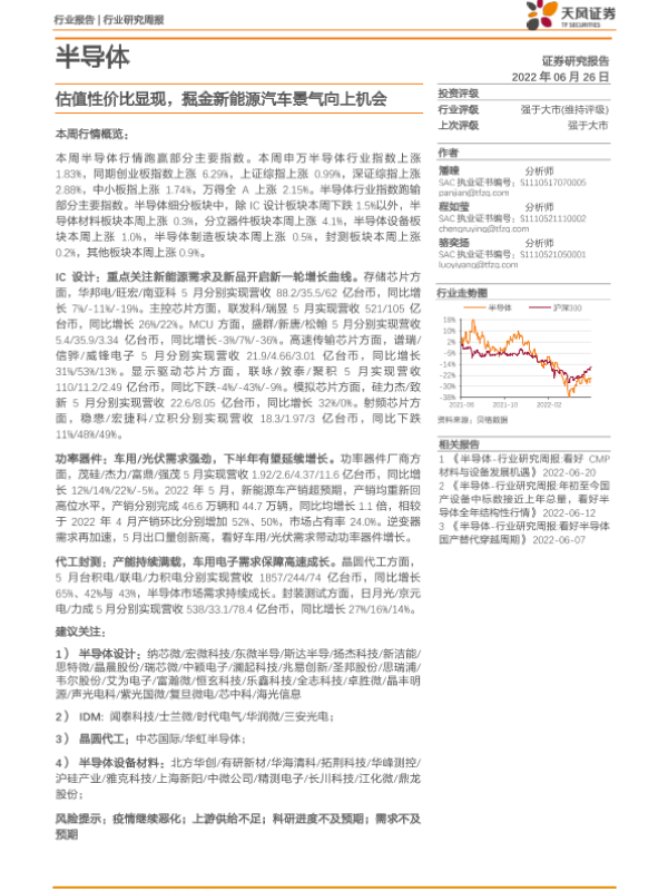 【天风证券】【20220626】20220626-天风证券-半导体行业研究周报:估值性价比显现,掘金新能源汽车景气向上机会-16页