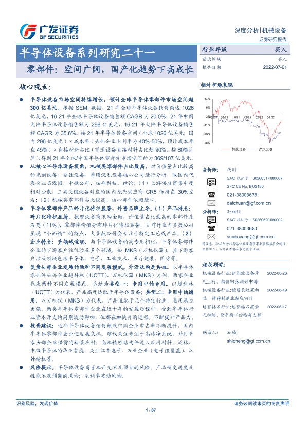 【广发证券】【20220701】半导体设备系列研究二十一:零部件:空间广阔,国产化趋势下高成长-37页