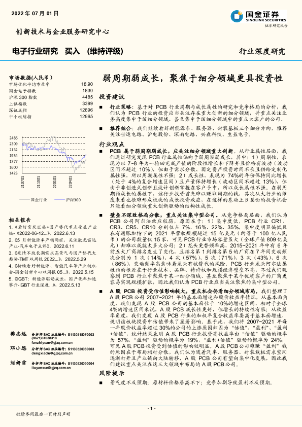 PCB 弱周期弱成长 投资策略 电子行业 细分领域