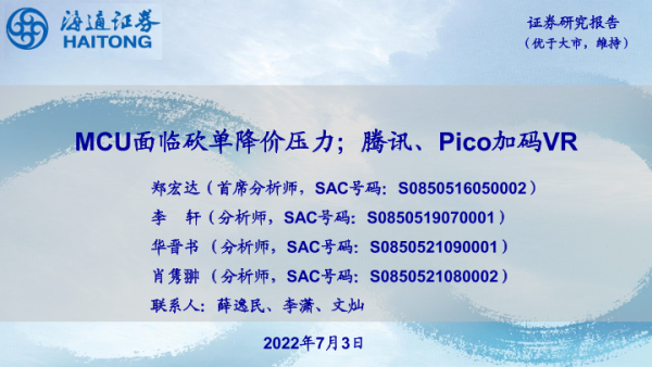 【海通证券】【20220703】电子行业:MCU面临砍单降价压力;腾讯、Pico加码VR-10页