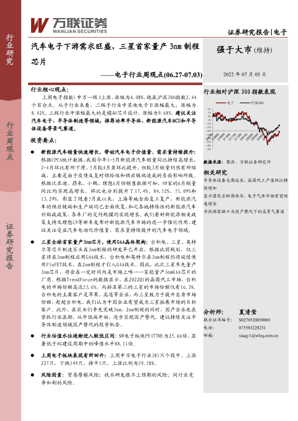 【万联证券】【20220705】汽车电子下游需求旺盛,三星首家量产3nm制程芯片-12页