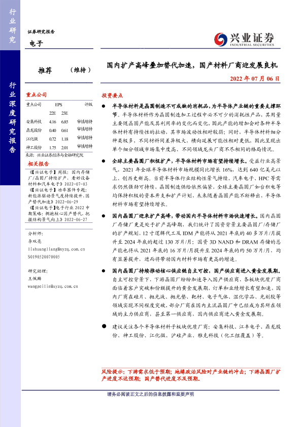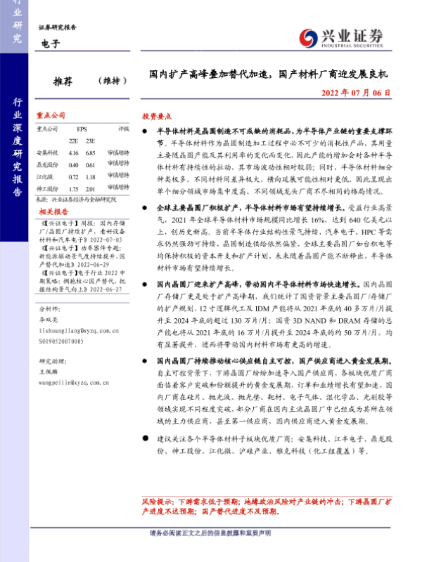 【兴业证券】【20220706】国内扩产高峰叠加替代加速,国产材料厂商迎发展良机-68页