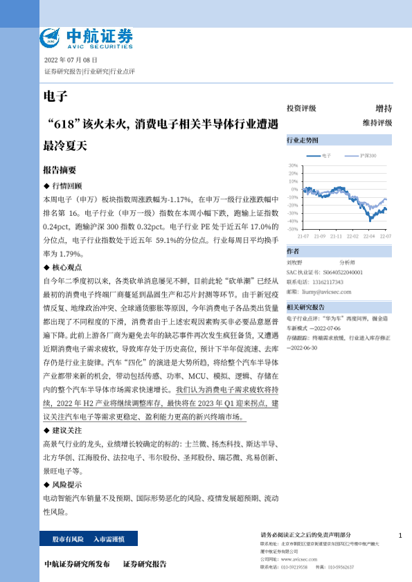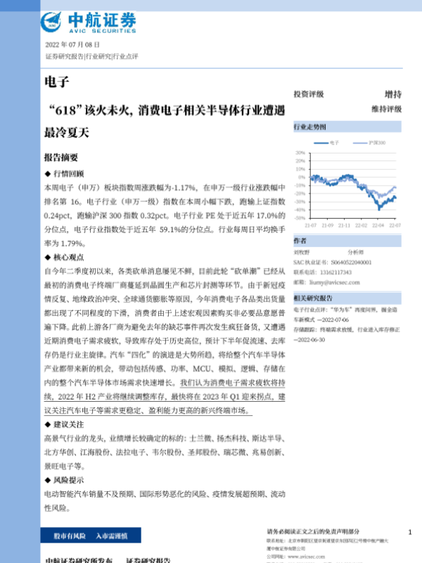 【中航证券】【20220708】“618”该火未火,消费电子相关半导体行业遭遇最冷夏天-16页