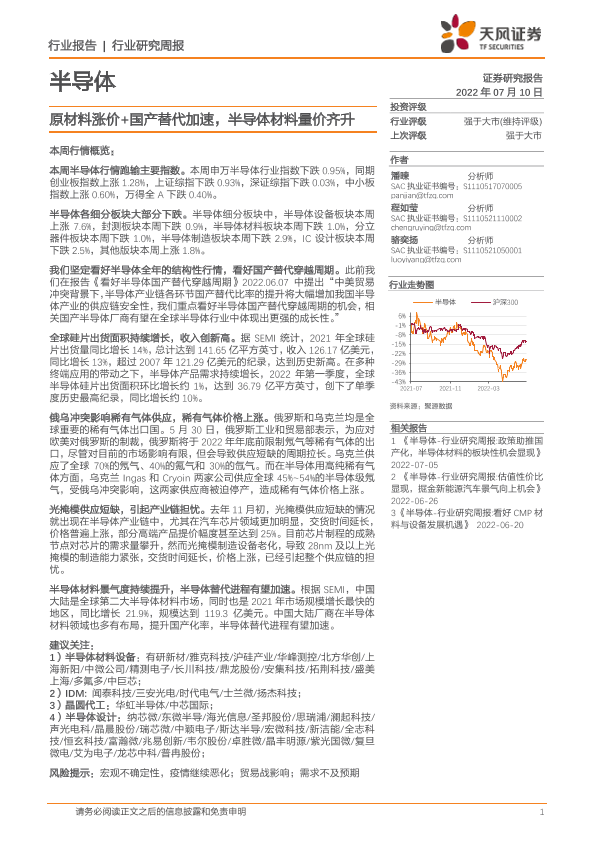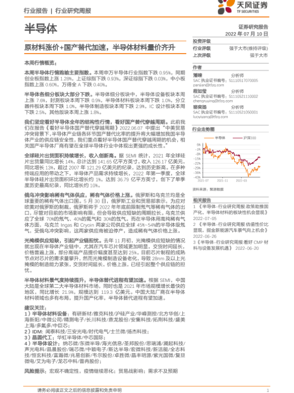 【天风证券】【20220710】20220710-天风证券-半导体行业研究周报:原材料涨价+国产替代加速,半导体材料量价齐升-11页