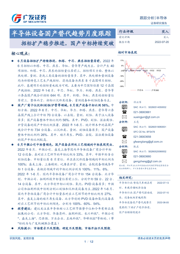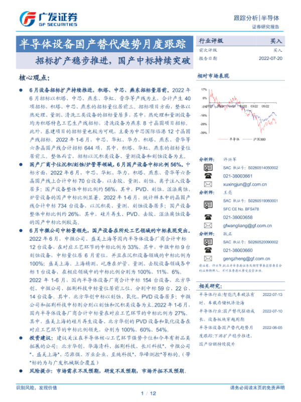 【广发证券】【20220720】半导体设备国产替代趋势月度跟踪:招标扩产稳步推进,国产中标持续突破-12页