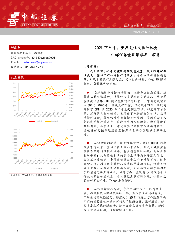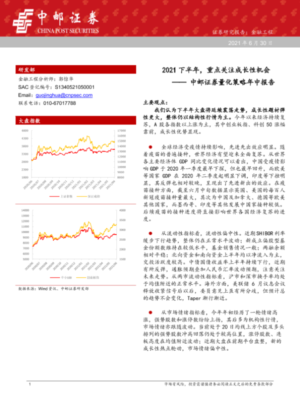 【中邮证券】【20210630】量化策略年中报告:2021下半年,重点关注成长性机会-28页