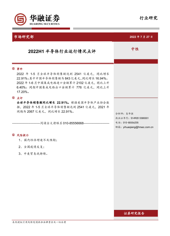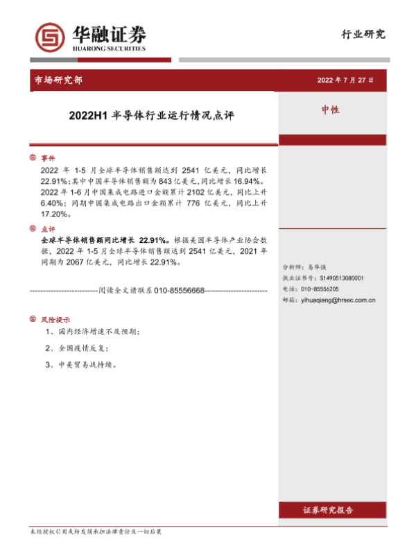 【国新证券】【20220727】2022H1半导体行业运行情况点评-2页