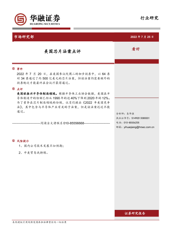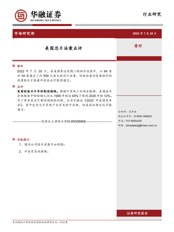 【国新证券】【20220725】20220725-国新证券公司-电子行业研究:美国芯片法案点评-2页