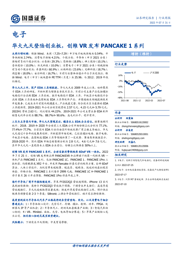【国盛证券】【20220731】20220731-国盛证券-电子行业周报:华大九天登陆创业板,创维VR发布PANCAKE1系列-17页