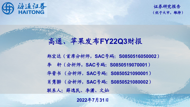 【海通证券】【20220731】高通、苹果发布FY22Q3财报-10页