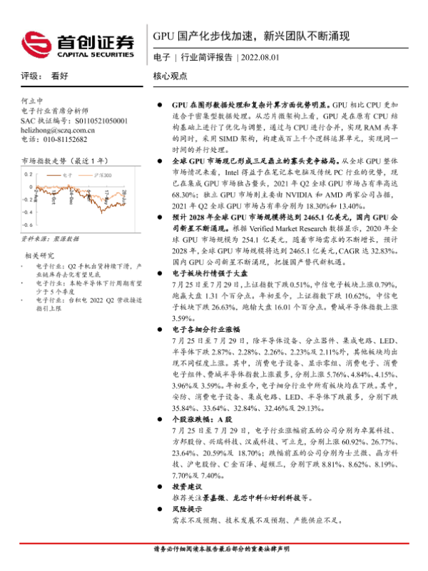 【首创证券】【20220801】GPU国产化步伐加速,新兴团队不断涌现-15页