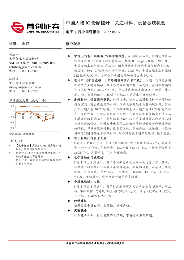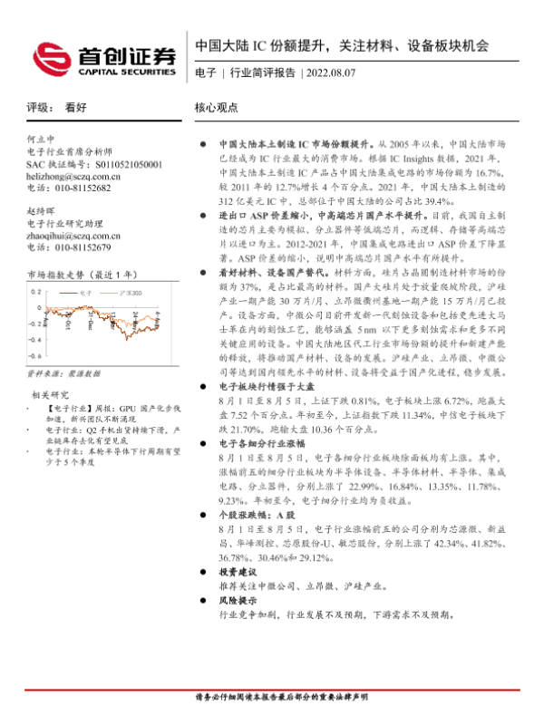 【首创证券】【20220807】中国大陆IC份额提升,关注材料、设备板块机会-12页