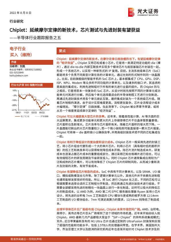 【光大证券】【20220808】半导体行业跟踪报告之五:Chiplet:延续摩尔定律的新技术,芯片测试与先进封装有望获益-4页