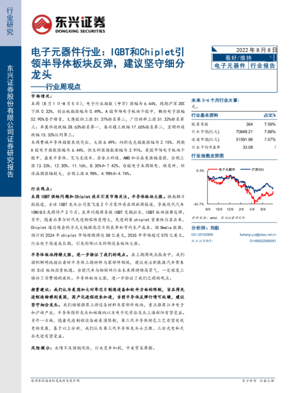 【东兴证券】【20220808】20220808-东兴证券-电子元器件行业周观点:IGBT和Chiplet引领半导体板块反弹,建议坚守细分龙头-10页