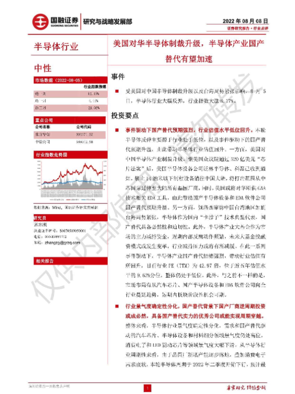 【国融证券】【20220808】20220808-国融证券-半导体行业点评:美国对华半导体制裁升级,半导体产业国产替代有望加速-3页