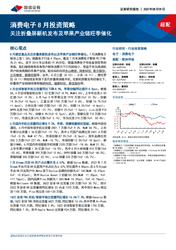 【国信证券】【20220809】消费电子8月投资策略:关注折叠屏新机发布及苹果产业链旺季催化-23页