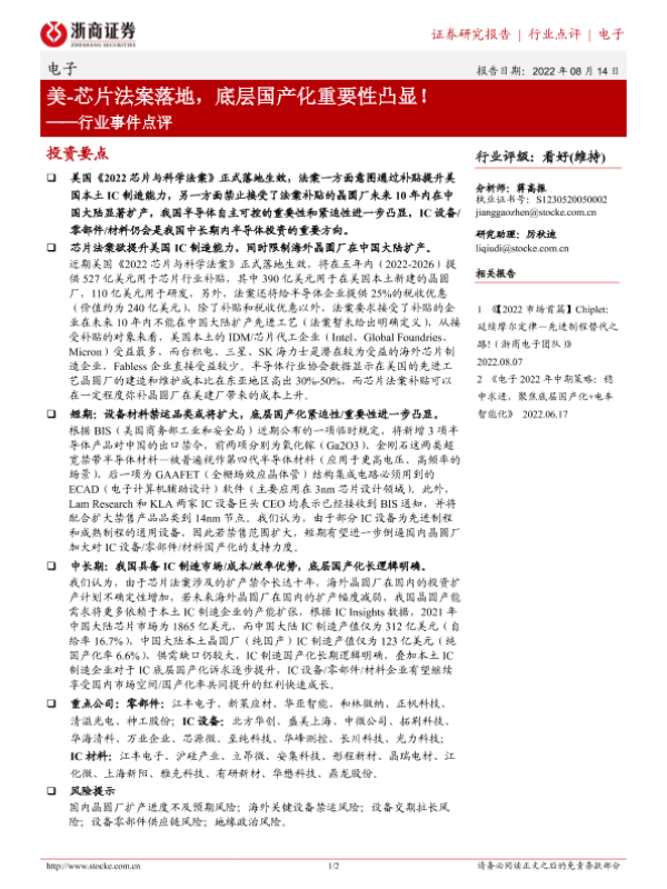 【浙商证券】【20220814】20220814-浙商证券-电子行业事件点评:美-芯片法案落地,底层国产化重要性凸显!-2页