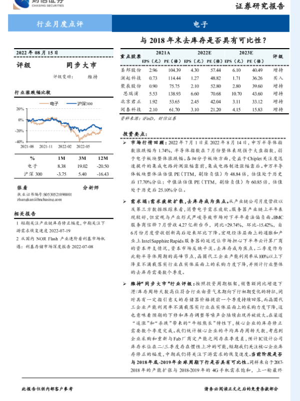 【财信证券】【20220815】20220815-财信证券-电子行业月度点评:与2018年末去库存是否具有可比性?-11页
