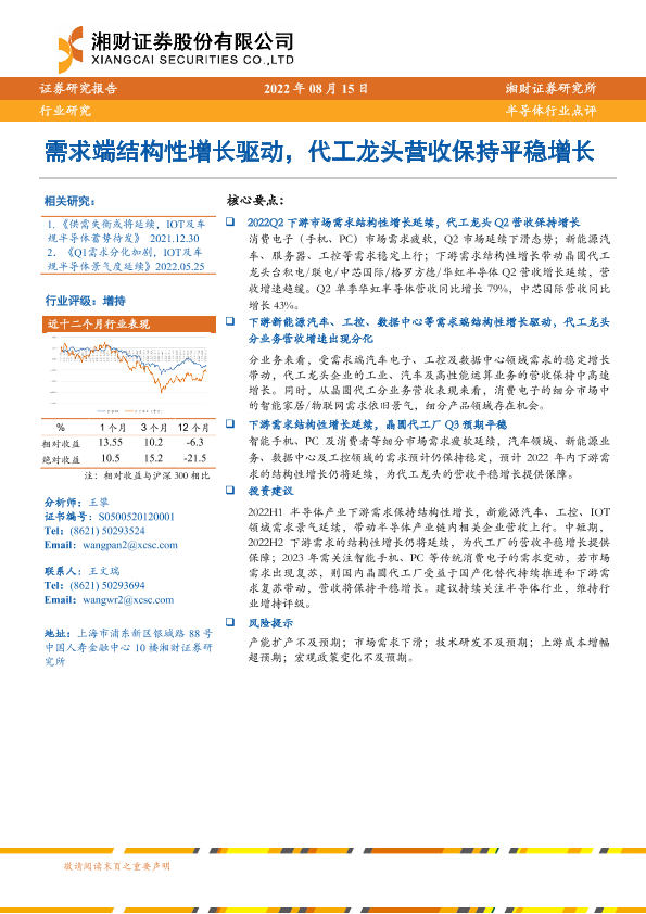 【湘财证券】【20220815】20220815-湘财证券-半导体行业点评:需求端结构性增长驱动,代工龙头营收保持平稳增长-8页