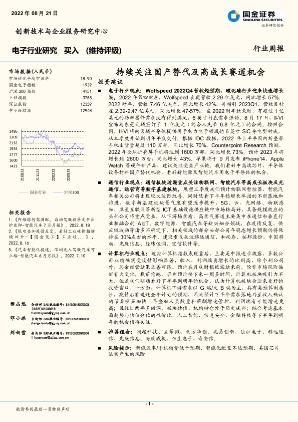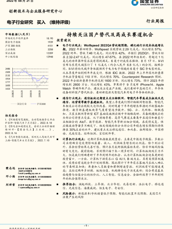 【国金证券】【20220821】20220821-国金证券-电子行业研究:持续关注国产替代及高成长赛道机会-21页
