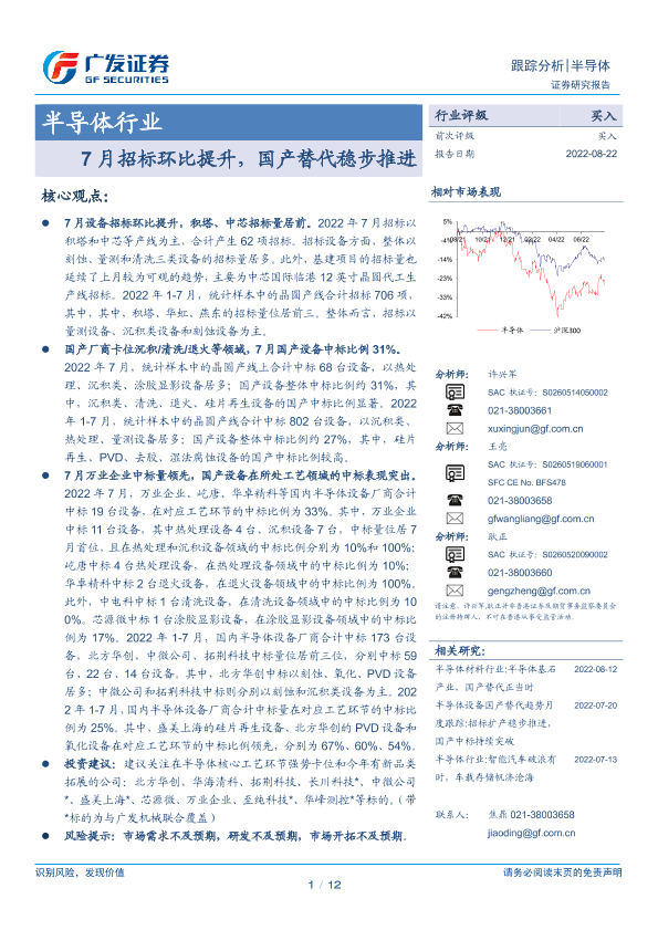 【广发证券】【20220822】20220822-广发证券-半导体行业:7月招标环比提升,国产替代稳步推进-12页