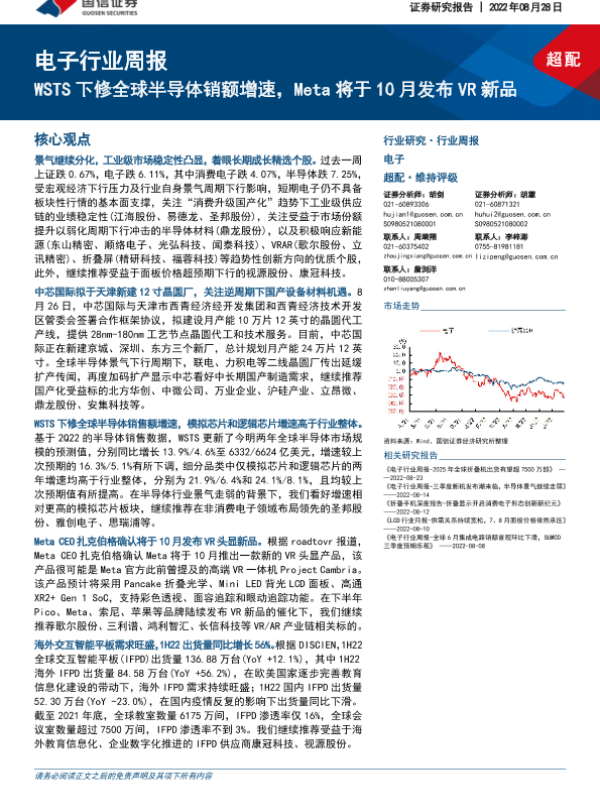 【国信证券】【20220828】20220828-国信证券-电子行业周报:WSTS下修全球半导体销额增速,Meta将于10月发布VR新品-14页