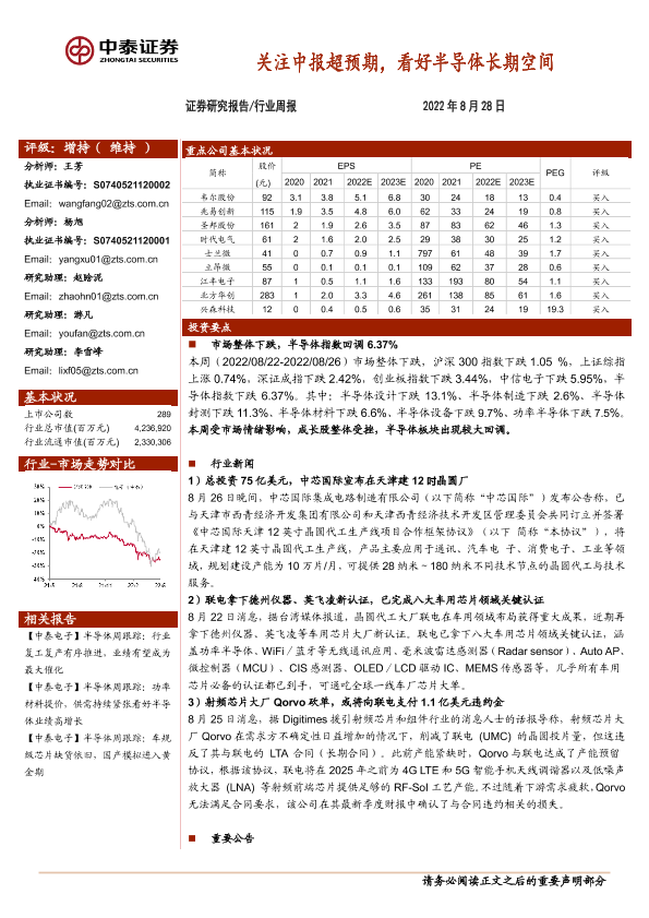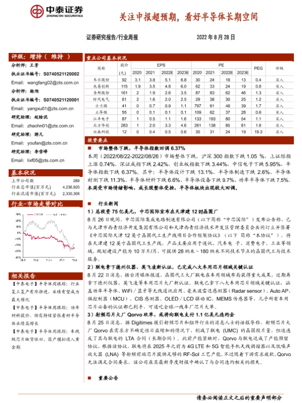 【中泰证券】【20220828】20220828-中泰证券-半导体行业周报:关注中报超预期,看好半导体长期空间-15页