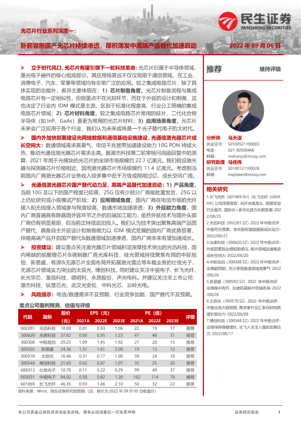 【民生证券】【20220905】光芯片行业系列深度一:卧薪尝胆国产光芯片持续渗透,厚积薄发中高端产品替代加速启动-60页
