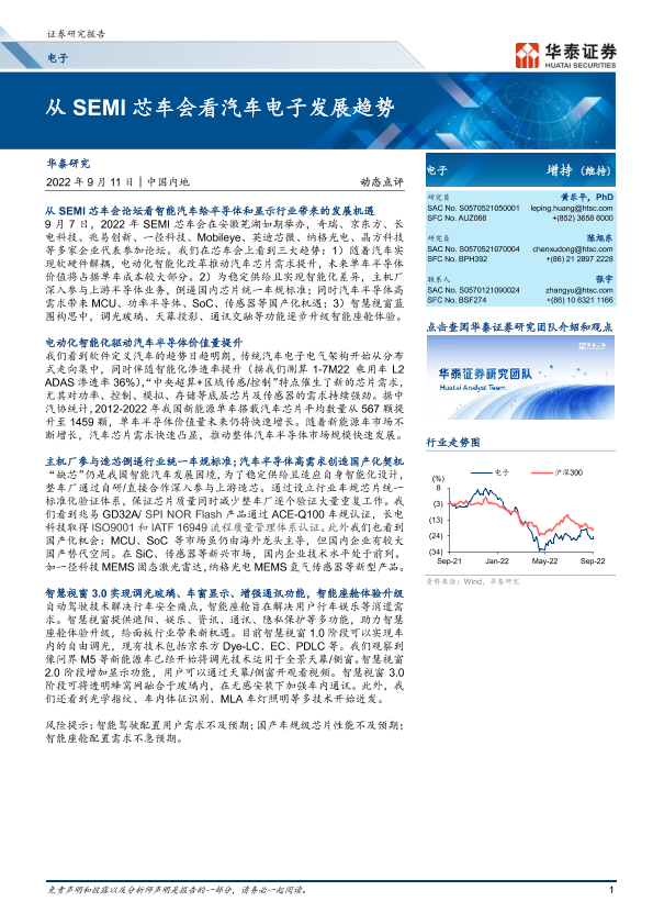 【华泰证券】【20220911】从SEMI芯车会看汽车电子发展趋势-6页