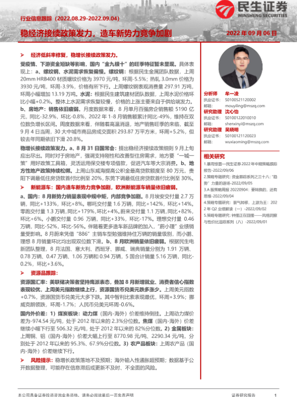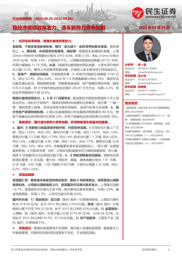【民生证券】【20220906】行业信息跟踪:稳经济接续政策发力,造车新势力竞争加剧-26页