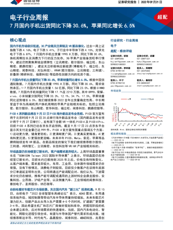 【国信证券】【20220921】20220921-国信证券-电子行业周报:7月国内手机出货同比下降30.6%,苹果同比增长6.5%-13页