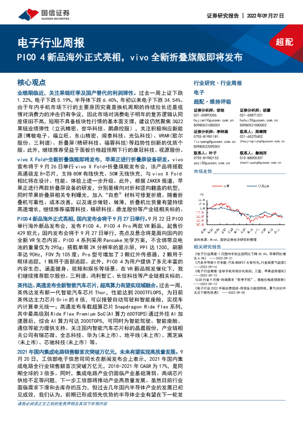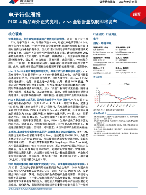 【国信证券】【20220927】电子行业周报:PICO 4新品海外正式亮相,vivo全新折叠旗舰即将发布-12页
