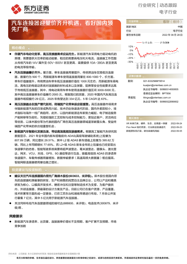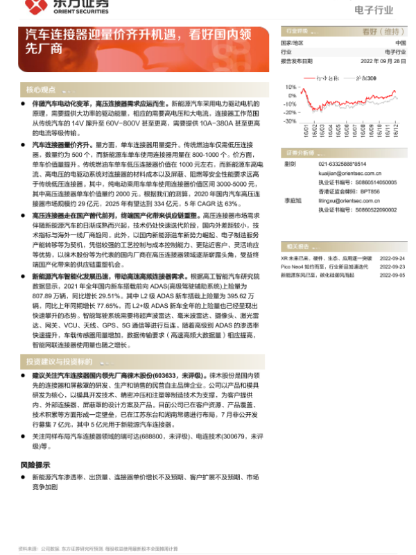 【东方证券】【20220928】电子行业动态跟踪:汽车连接器迎量价齐升机遇,看好国内领先厂商-10页
