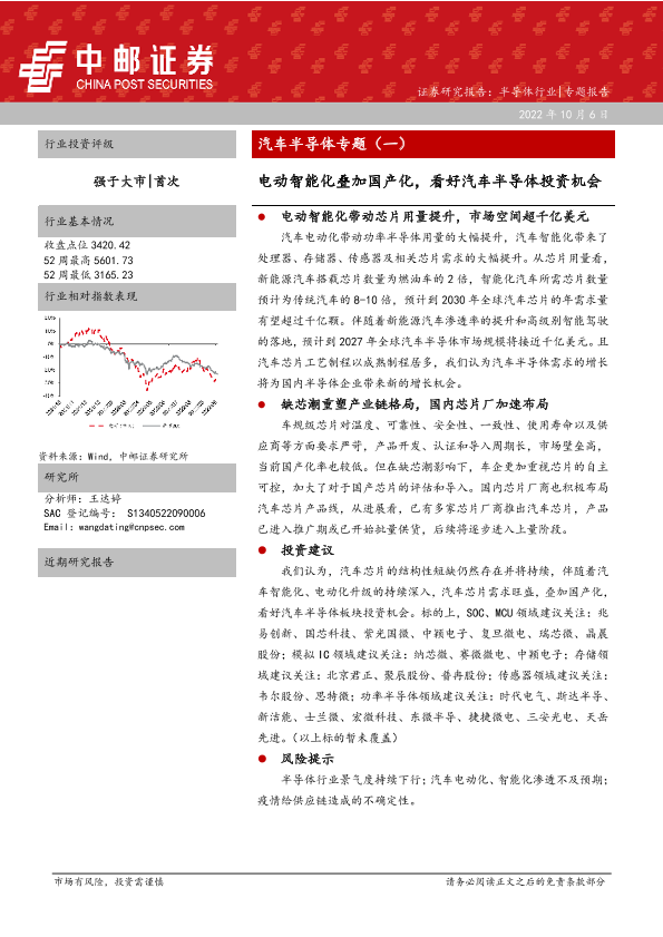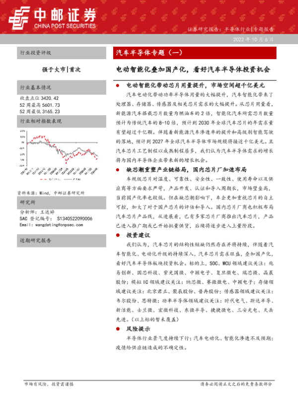 【中邮证券】【20221006】汽车半导体专题(一):电动智能化叠加国产化,看好汽车半导体投资机会-14页