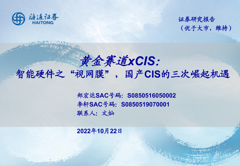 【海通证券】【20221022】黄金赛道xCIS:智能硬件之“视网膜”,国产CIS的三次崛起机遇-52页
