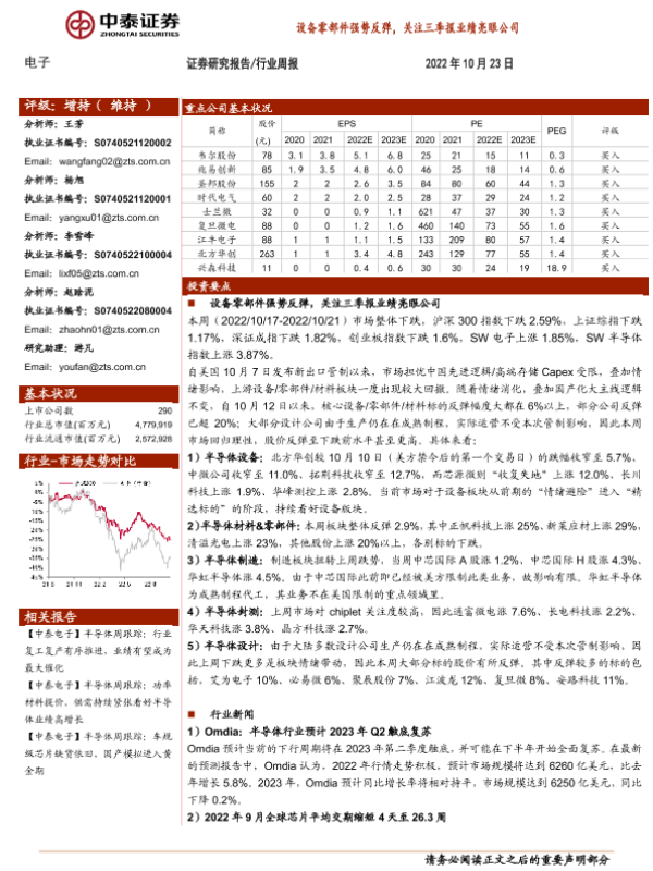 【中泰证券】【20221023】20221023-中泰证券-电子行业周报:设备零部件强势反弹,关注三季报业绩亮眼公司-14页