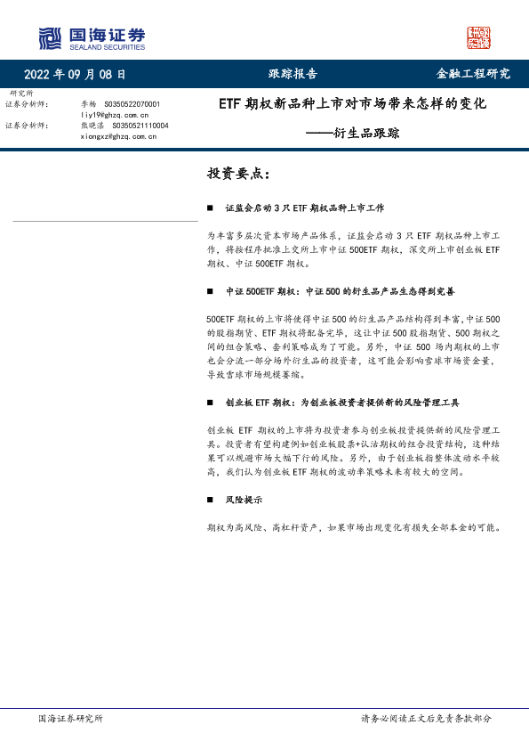 【国海证券】【20220908】ETF期权新品种上市对市场带来怎样的变化-18页