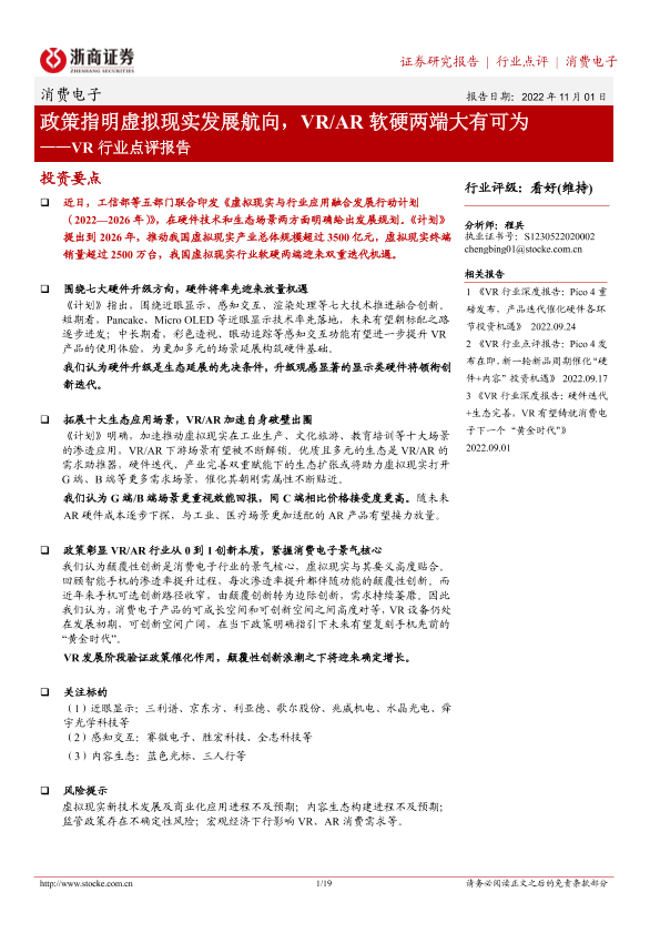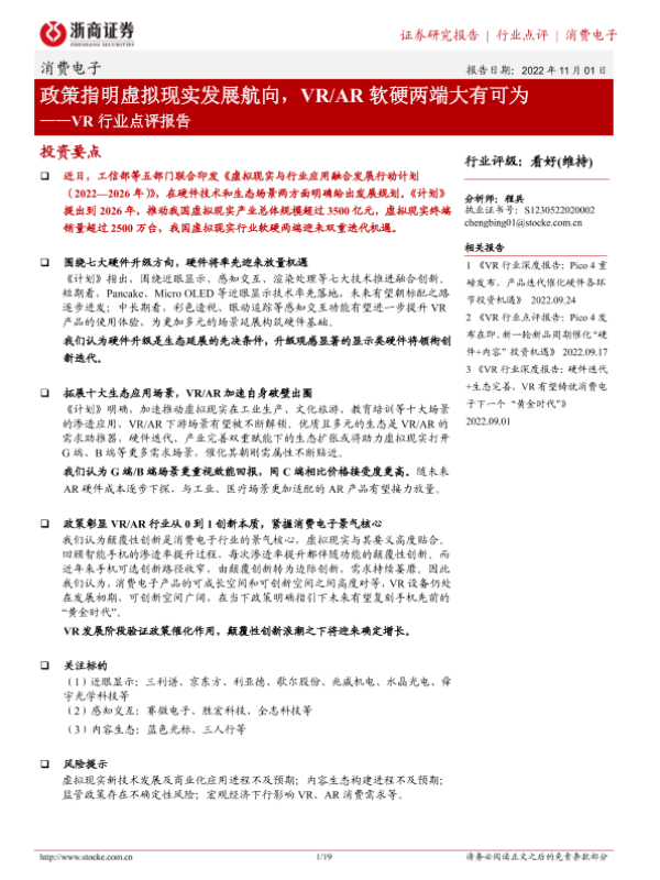 【浙商证券】【20221101】政策指明虚拟现实发展航向,VR AR软硬两端大有可为——VR行业点评报告-19页
