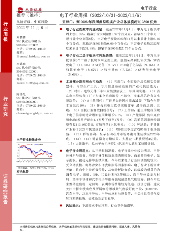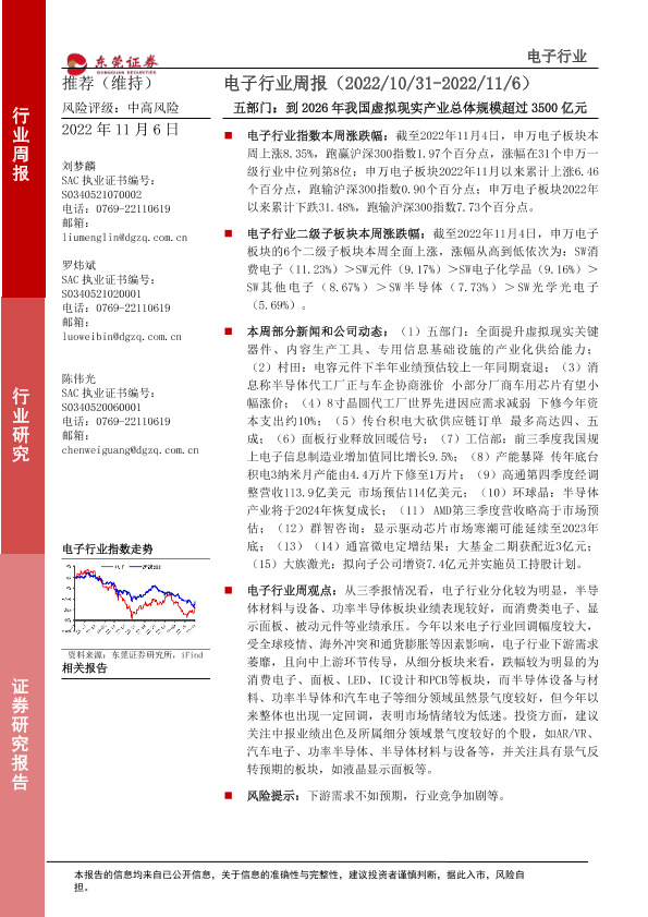 【东莞证券】【20221106】20221106-东莞证券-电子行业周报:五部门:到2026年我国虚拟现实产业总体规模超过3500亿元-13页