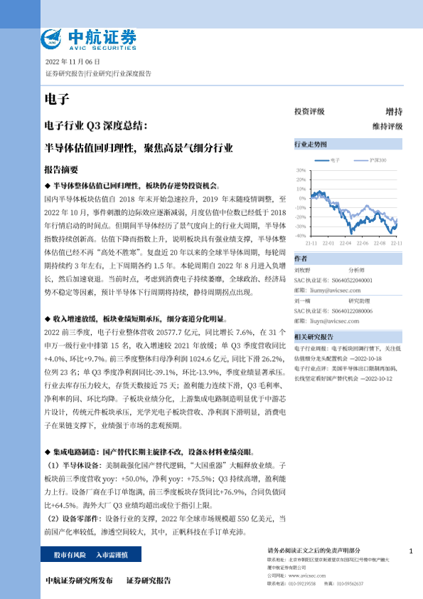 【中航证券】【20221106】电子行业Q3深度总结:半导体估值回归理性,聚焦高景气细分行业-35页