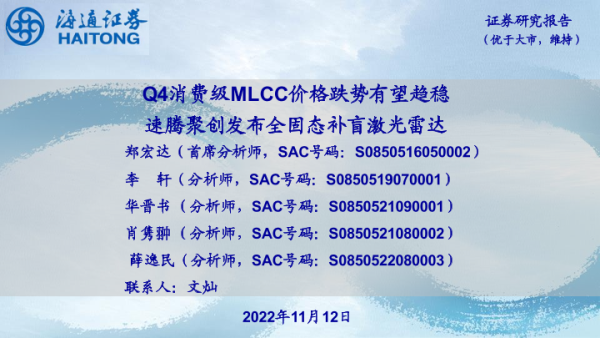 【海通证券】【20221112】Q4消费级MLCC价格跌势有望趋稳 速腾聚创发布全固态补盲激光雷达-10页