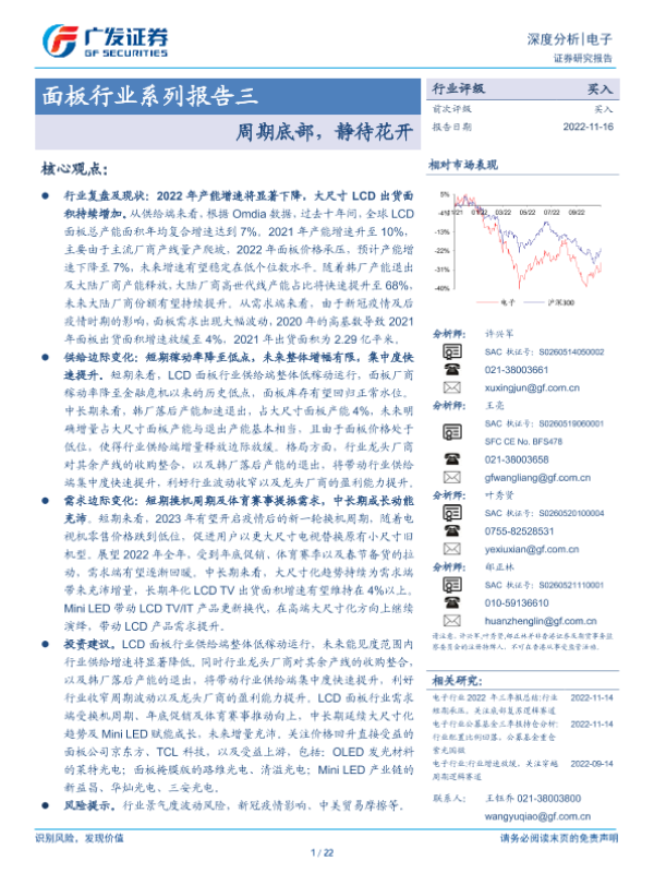 【广发证券】【20221116】面板行业系列报告三:周期底部,静待花开-22页