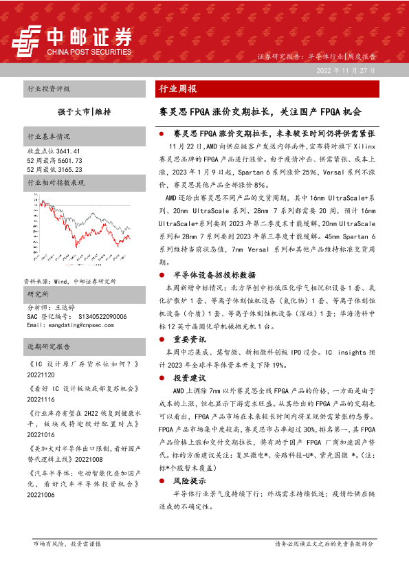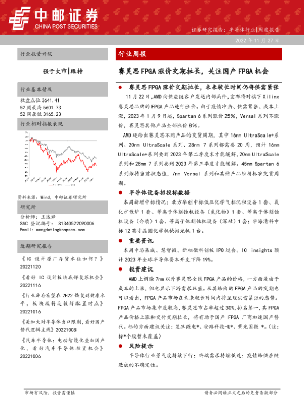【中邮证券】【20221127】20221127-中邮证券-半导体行业周报:赛灵思FPGA涨价交期拉长,关注国产FPGA机会-20页
