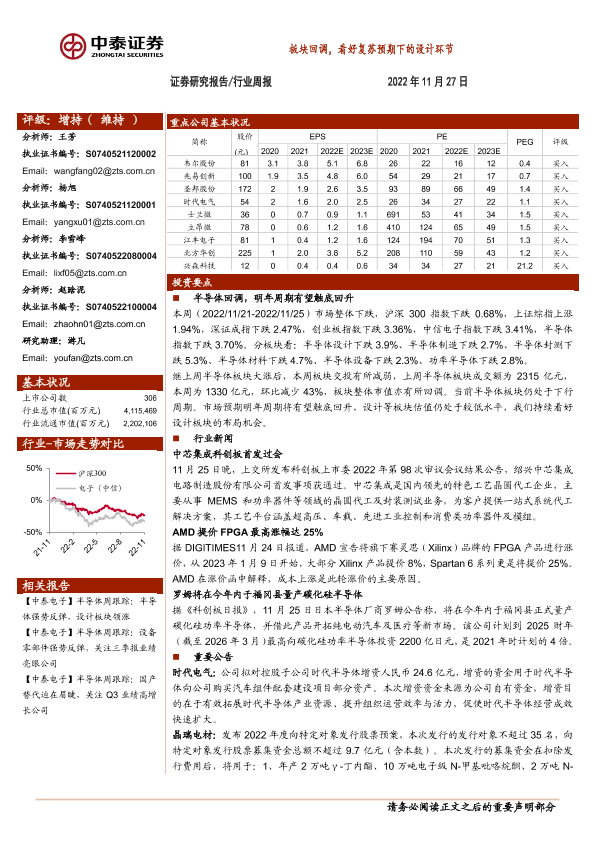 【中泰证券】【20221127】20221127-中泰证券-电子行业周报:板块回调,看好复苏预期下的设计环节-13页