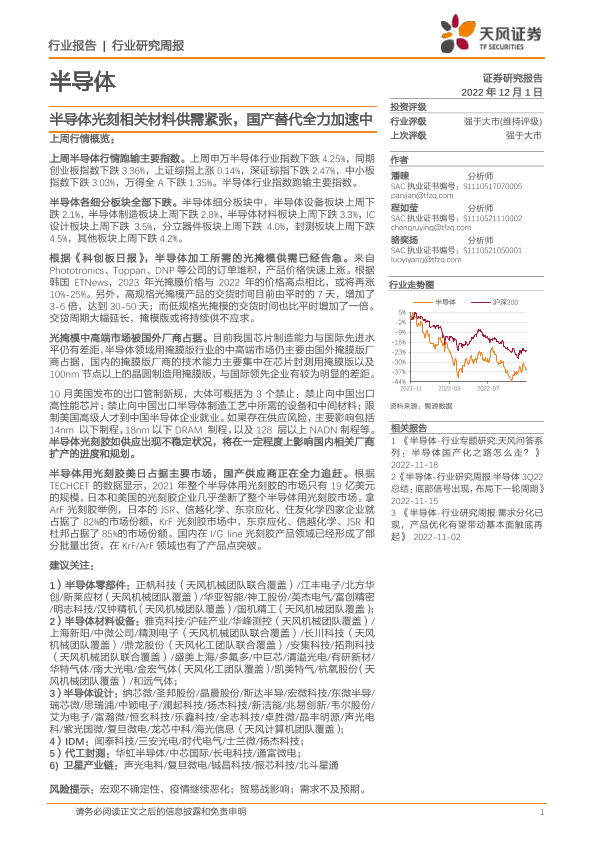 【天风证券】【20221201】半导体行业研究周报:半导体光刻相关材料供需紧张,国产替代全力加速中-11页