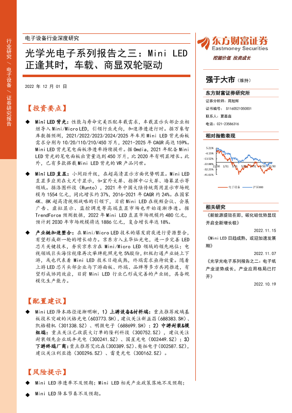 【东方财富证券】【20221201】电子设备行业深度研究:光学光电子系列报告之三:Mini LED正逢其时,车载、商显双轮驱动-34页