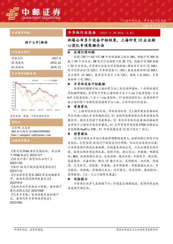 【中邮证券】【20221203】20221203-中邮证券-半导体行业报告:积塔公布多个设备中标结果,上海印发IC企业核心团队专项奖励办法-20页