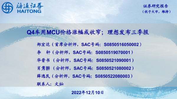 【海通证券】【20221210】20221210-海通证券-电子行业:Q4车用MCU价格涨幅或收窄;理想发布三季报-10页
