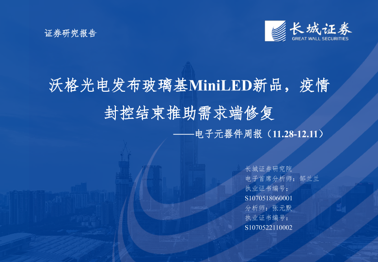 【长城证券】【20221211】20221211-长城证券-电子元器件周报:沃格光电发布玻璃基MiniLED新品,疫情封控结束推助需求端修复-48页